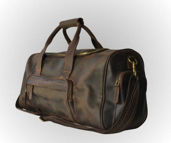 Berlin leren weekendtas – handgemaakt bruin Crazy Horse leer – 50 cm – compact – met schouderriem – PetsAndBags - WiMa -